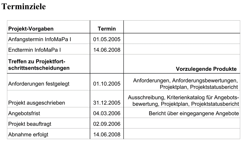 Das Projekt InfoMaPa I ist damit definiert und die Anforderungserstellung kann beginnen.