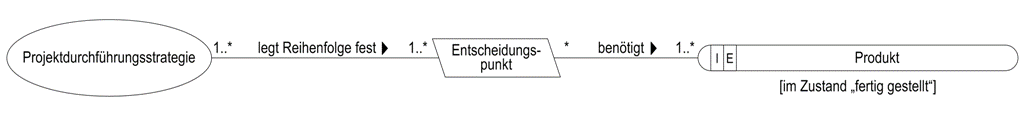 Die Entscheidungspunkte legen zusammen mit den Projektdurchführungsstrategien das "Wann" und "Was" fest, also wann welche Produkte fertiggestellt sein müssen.