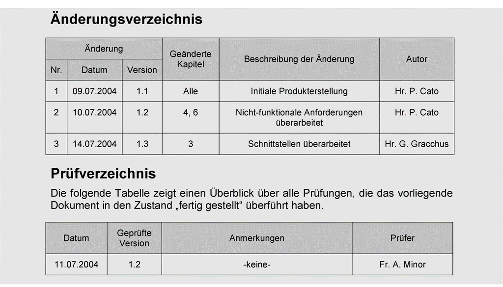 Abbildung 4: Änderungs- und Prüfverzeichnis in einem Beispieldokument
